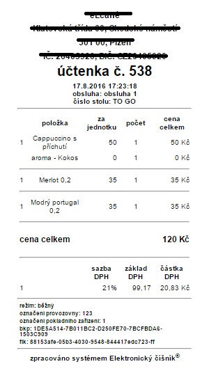Ukázka účtenky po zavedení EET